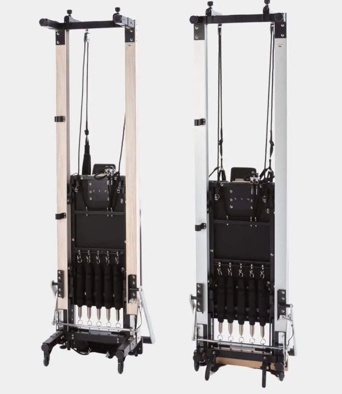 The Align-Pilates Silent System features silent pulleys, metal-free loop straps, and whisper-quiet 8-wheel carriages that eliminate distractions and keep classes focused. The perfect solution when considering pilates equipment for studios.