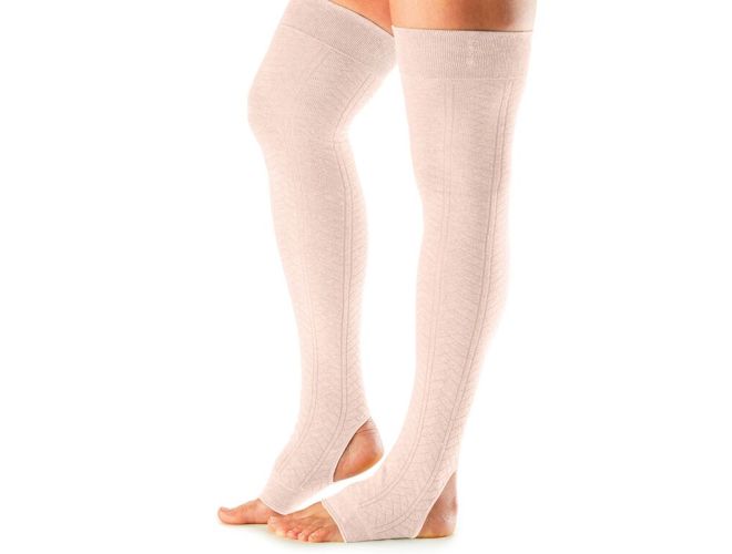 OPEN HEEL LEG WARMERS Cute. Soft. Practical. The Open Heel Leg warmer keeps you anchored while helping you step up your studio sessions in style thanks to its playful chevron detailing.